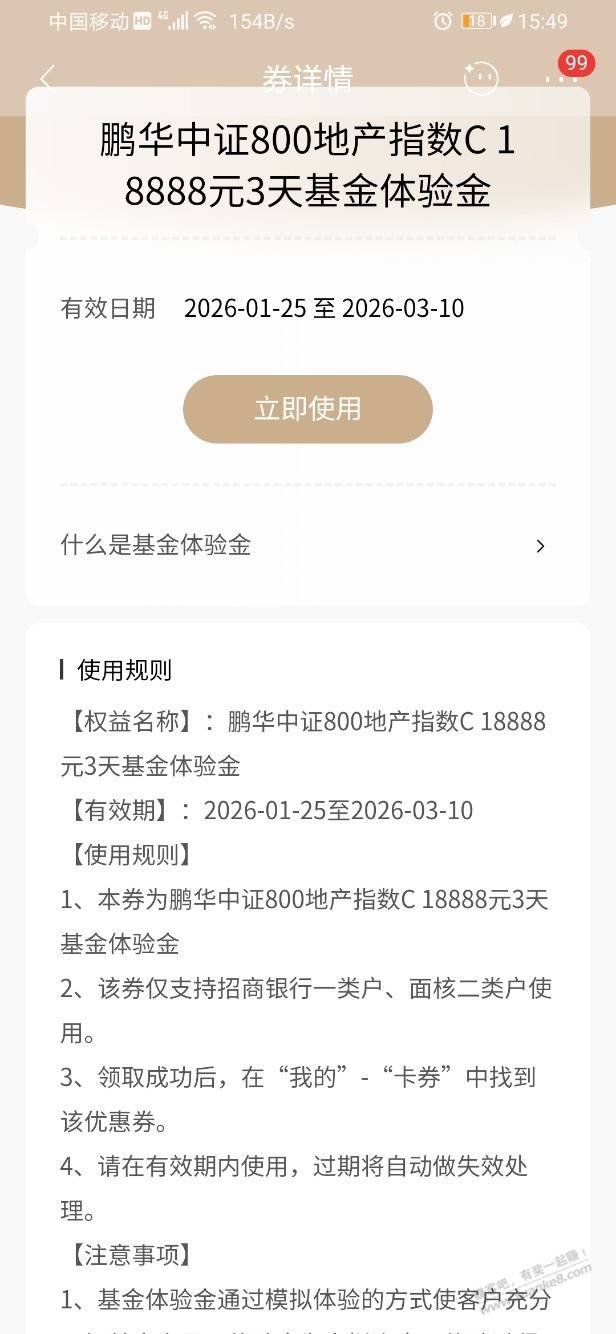 【招商银行】基金体验金18888元~