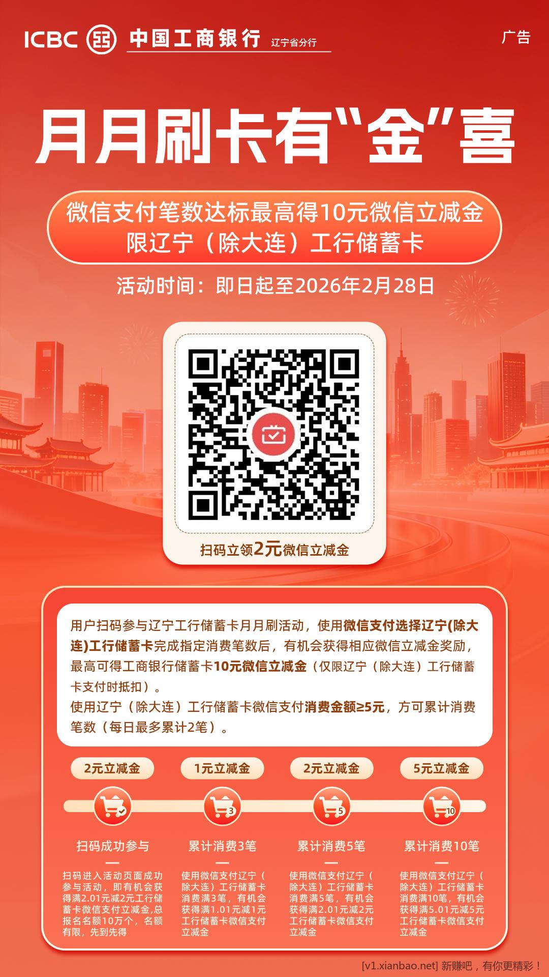 辽宁工行月月刷10元