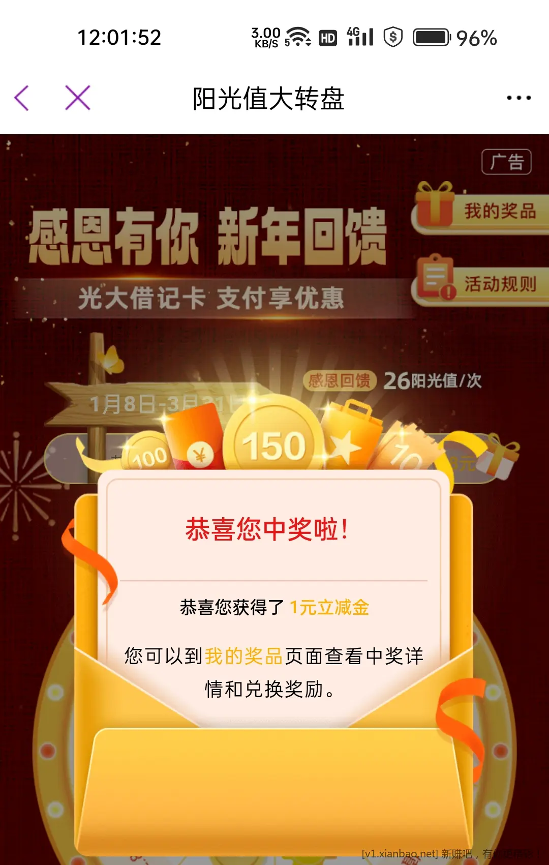 光大银行老活动基金财富活动有水,刚中1元抽奖,攒金币也可以兑换