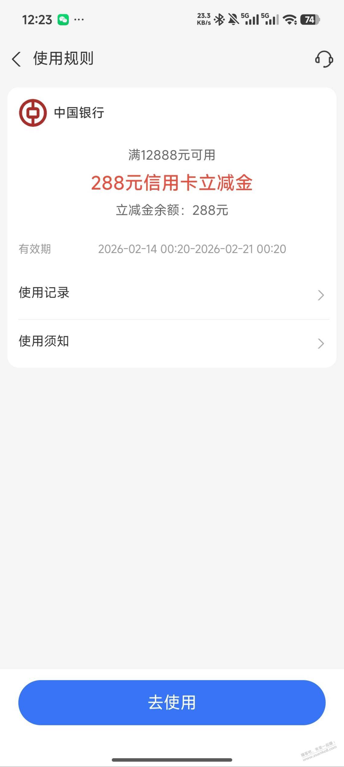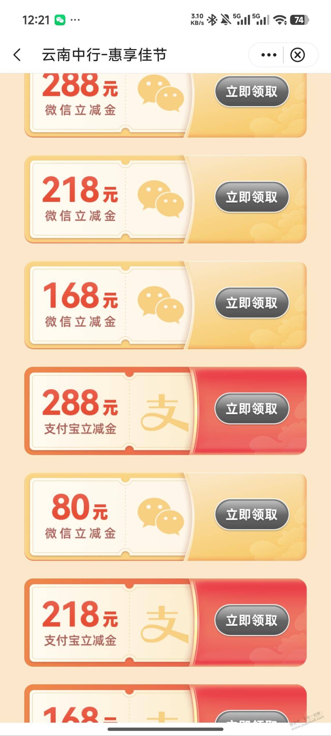 【中国银行】微信或支付宝立减金~