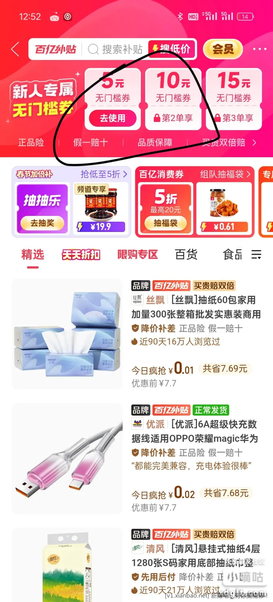 拼夕夕百亿补贴领无门槛券