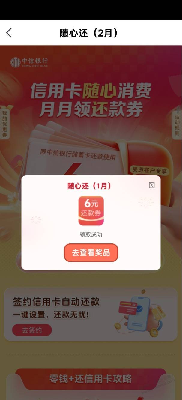中信xing/用卡还款券,刚领6元,自测