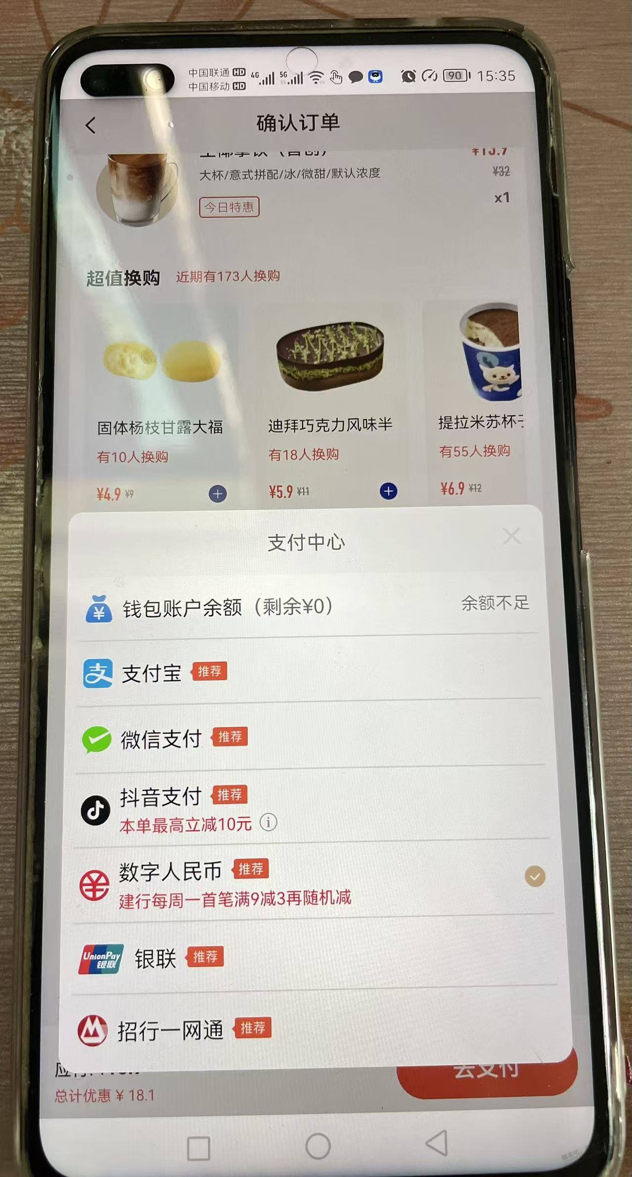 如图,可以卡余额试,数币钱包就留3元卡余额,只能点餐