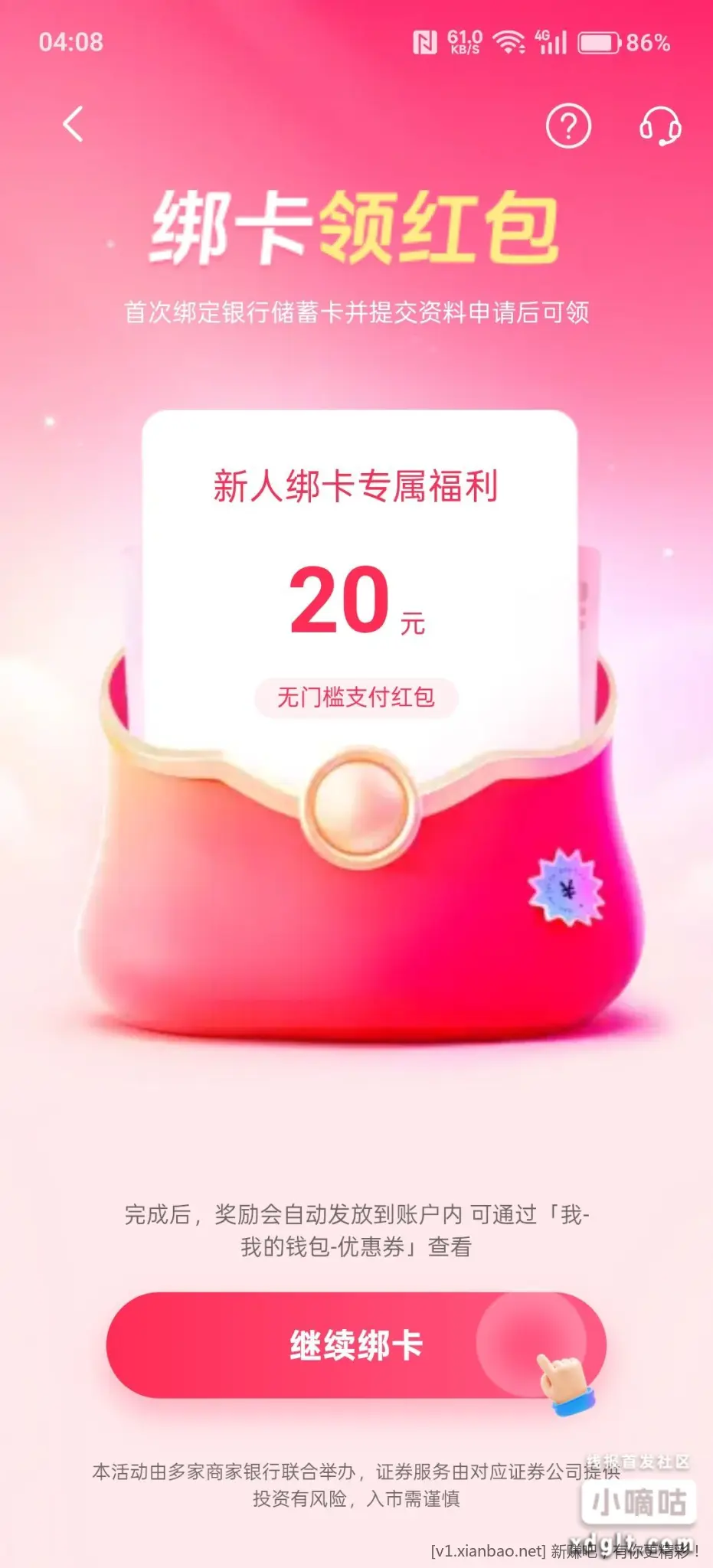 dou音进去钱包零钱,绑定银行卡开通证券,只要提交资料就给20无门槛支付券