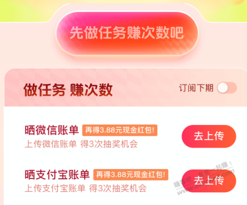 抖音放心借下面有任务,上传支付宝和微信账单各得一次3.88+1.66