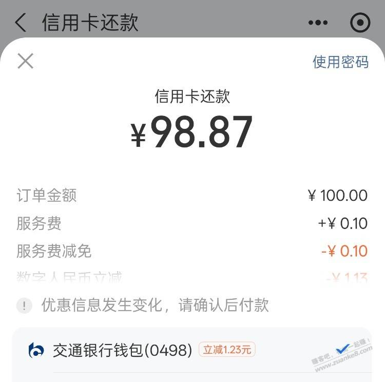 支付宝xing/用卡还款交行数字钱包一块多小毛