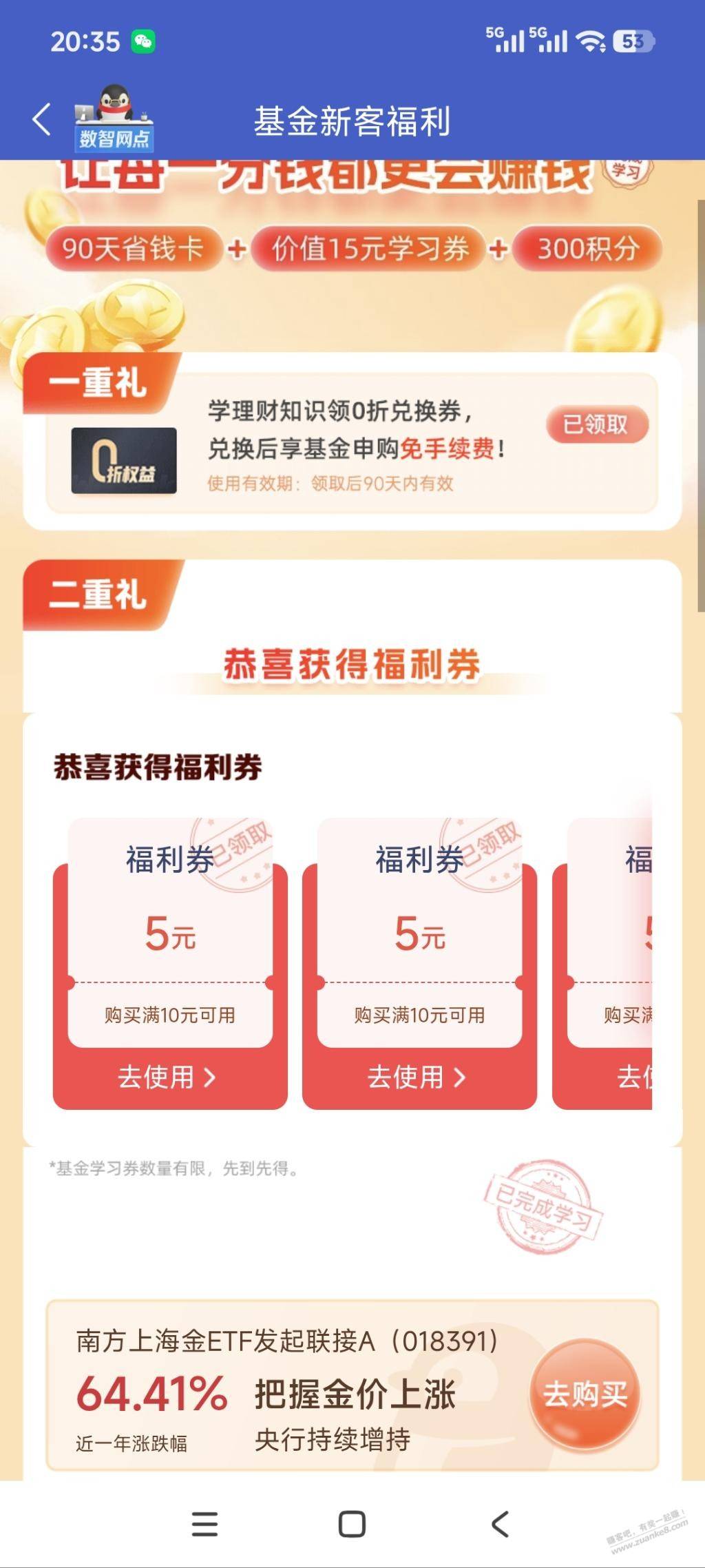 微众银行-基金--热门活动--学知识认领15元