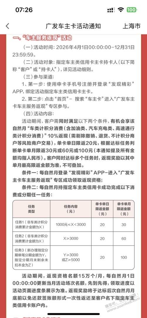 广发车主卡报名,下个月开始新规定了,返现少了