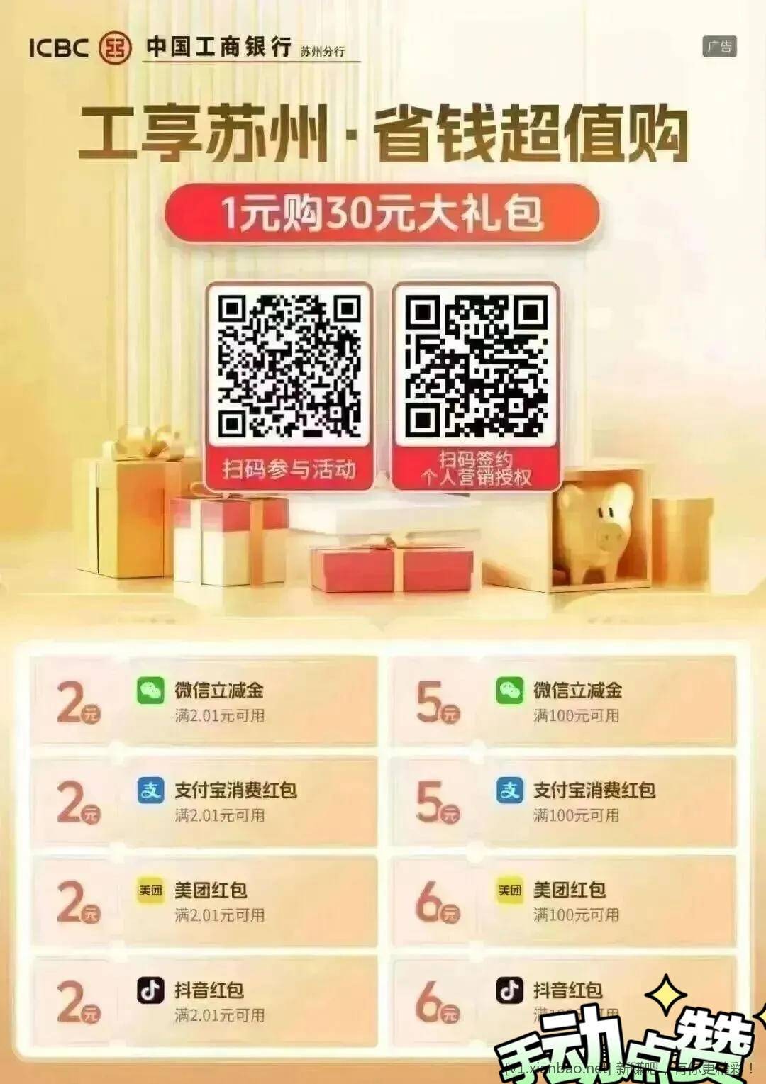 工行苏州省钱购1兑30立减金