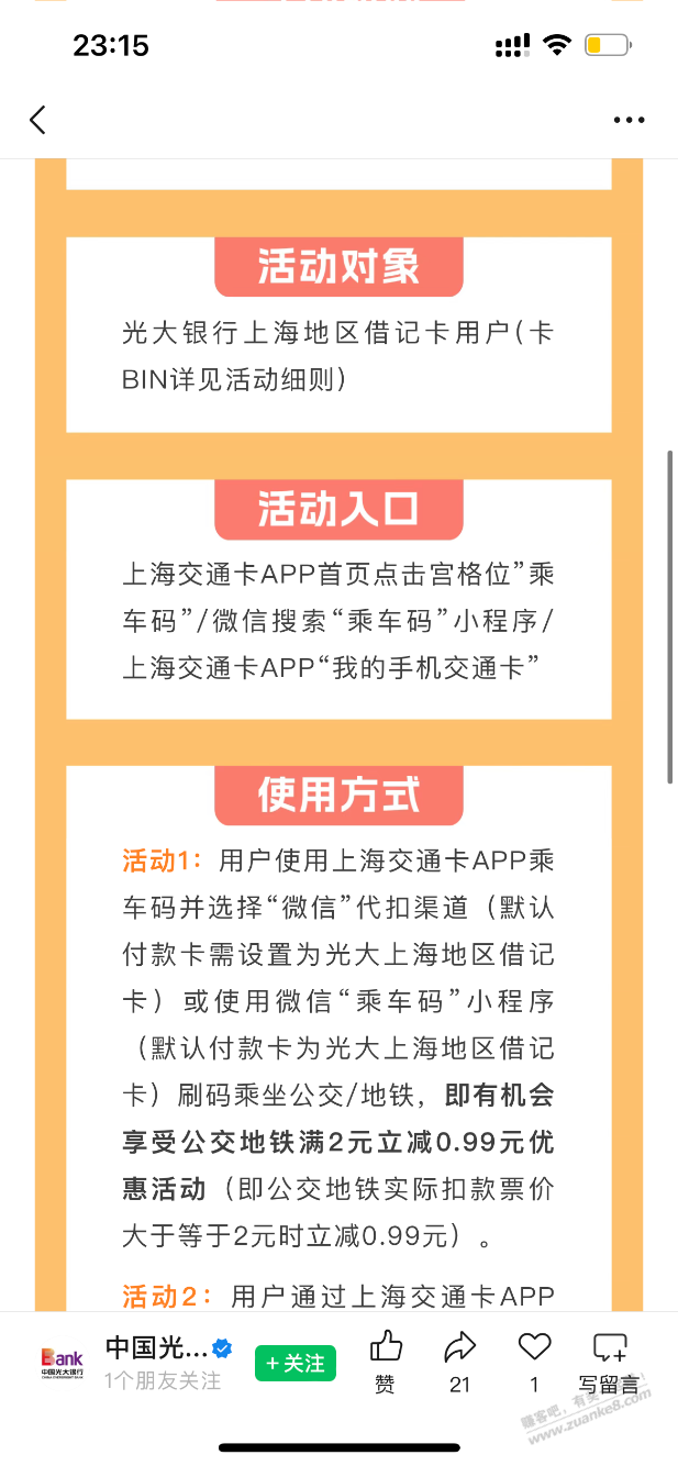 光大银行上海公交5折