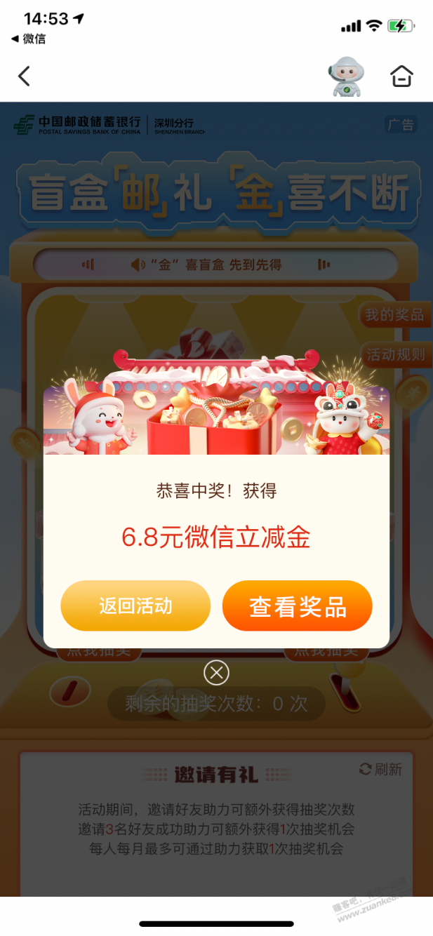 邮储xing/用卡报名,第一笔必得2.06元微信立减金