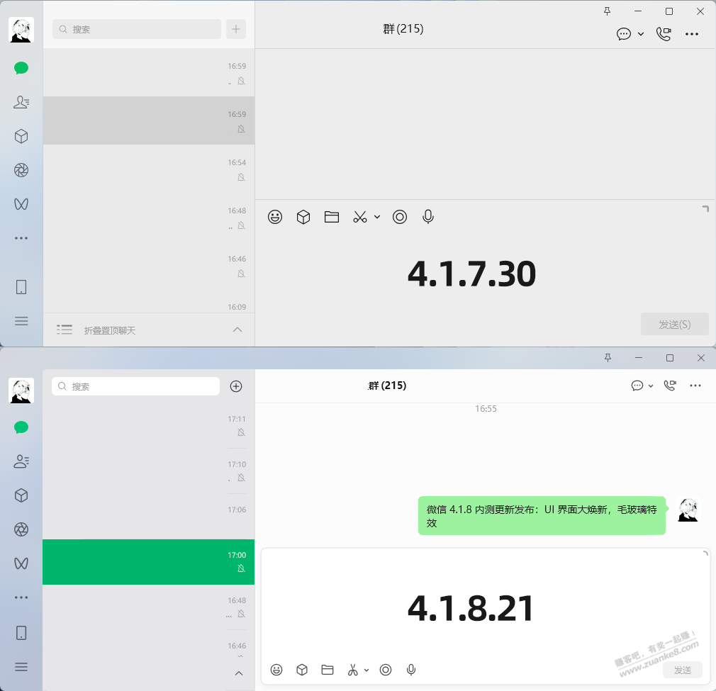 微信4.1.8内测更新发布:UI界面大焕新,毛玻璃特效
