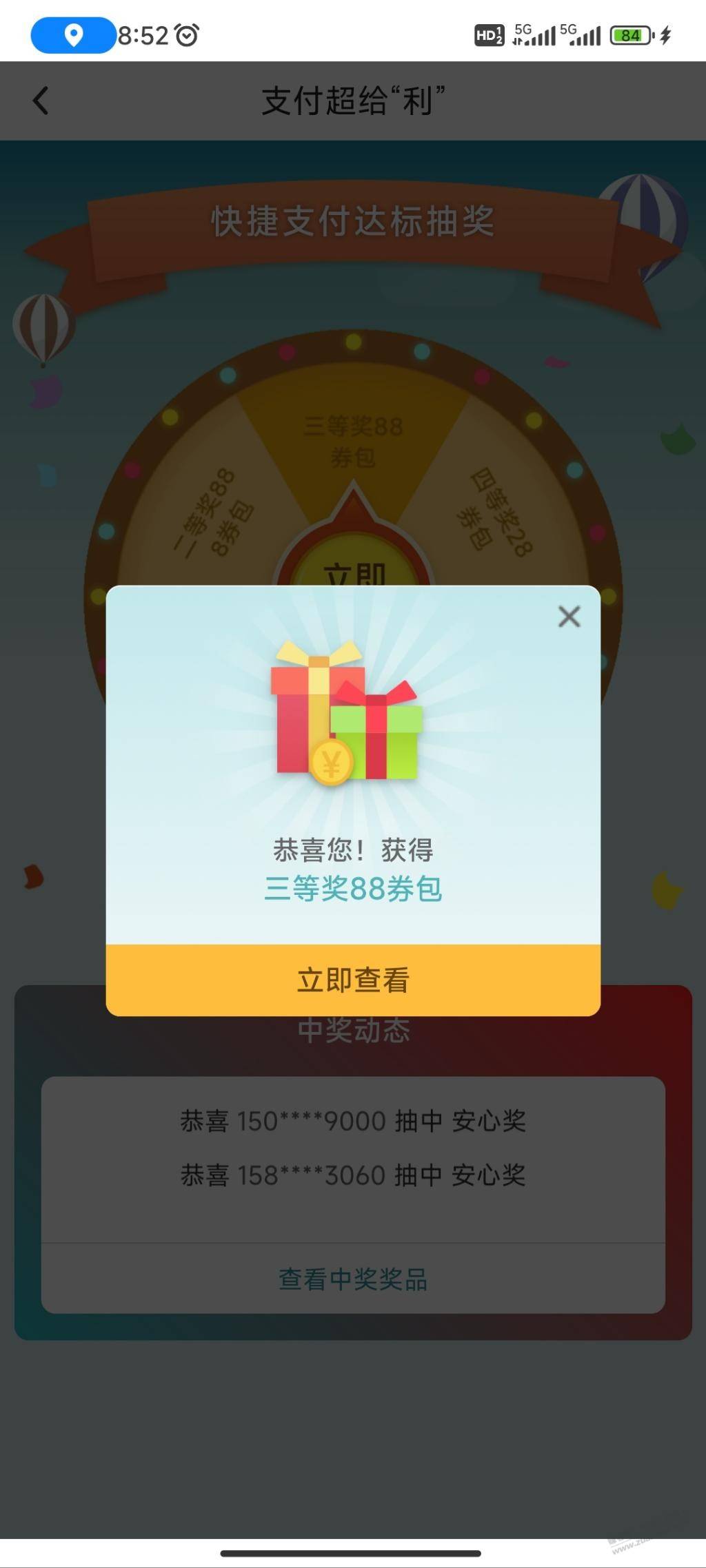 中行支付超给力三等奖刚抽
