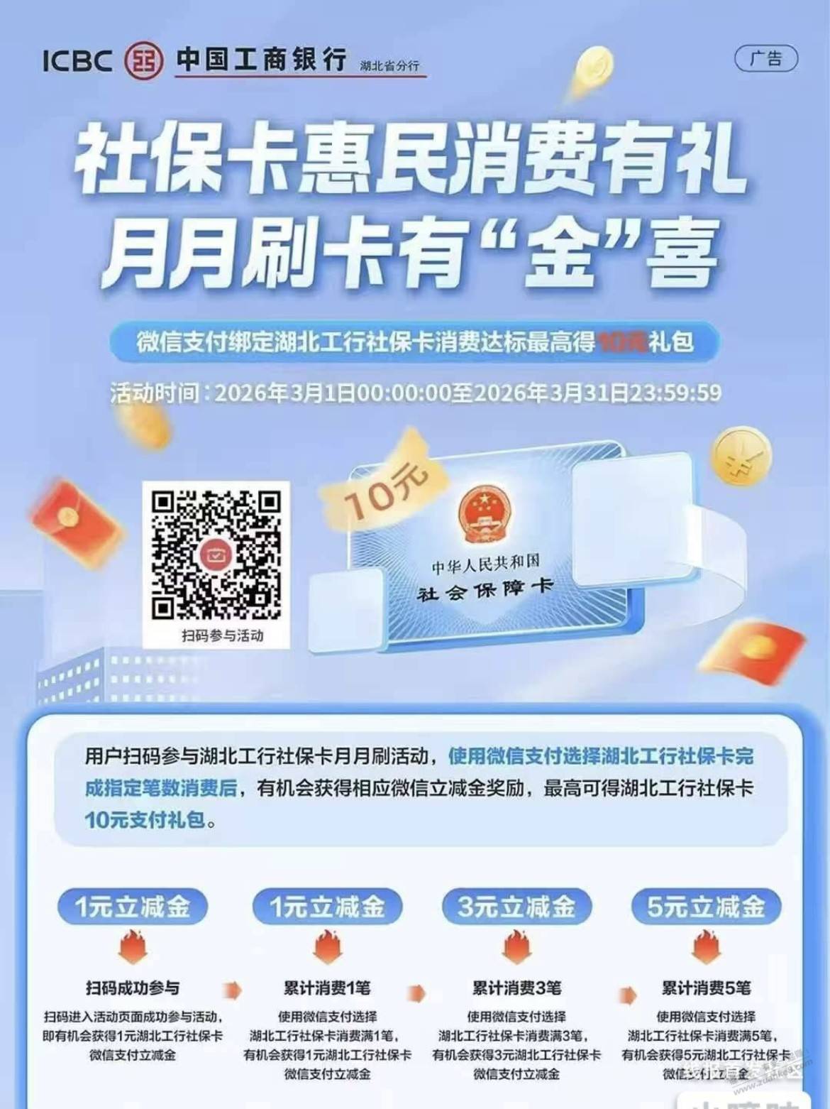 湖北工行月月刷共10元