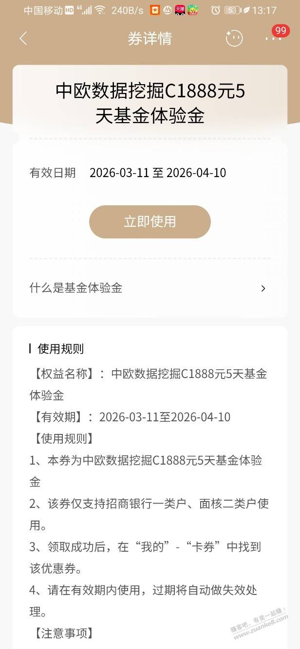 招行体验金黑号也有4个!(3月13日)