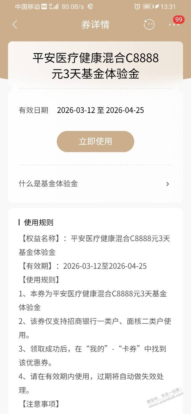 招行体验金黑号也有今天6个!(3月14日)