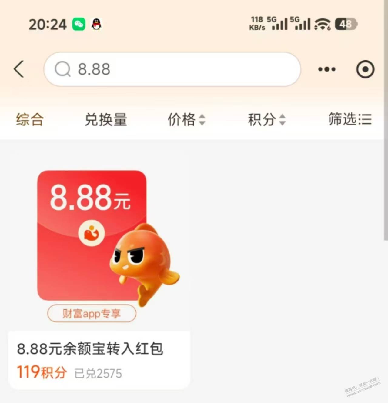 2.支付宝-我的-支付宝会员积分中心搜8.88,如图就可以兑换了,没有的换号,买9元就可以抵扣了