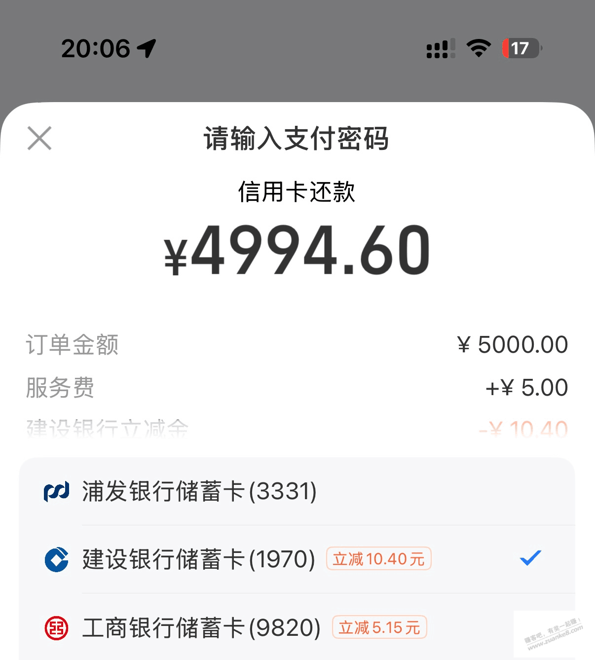 正常工行交行都有还1000减几块,今天发现5000还有减