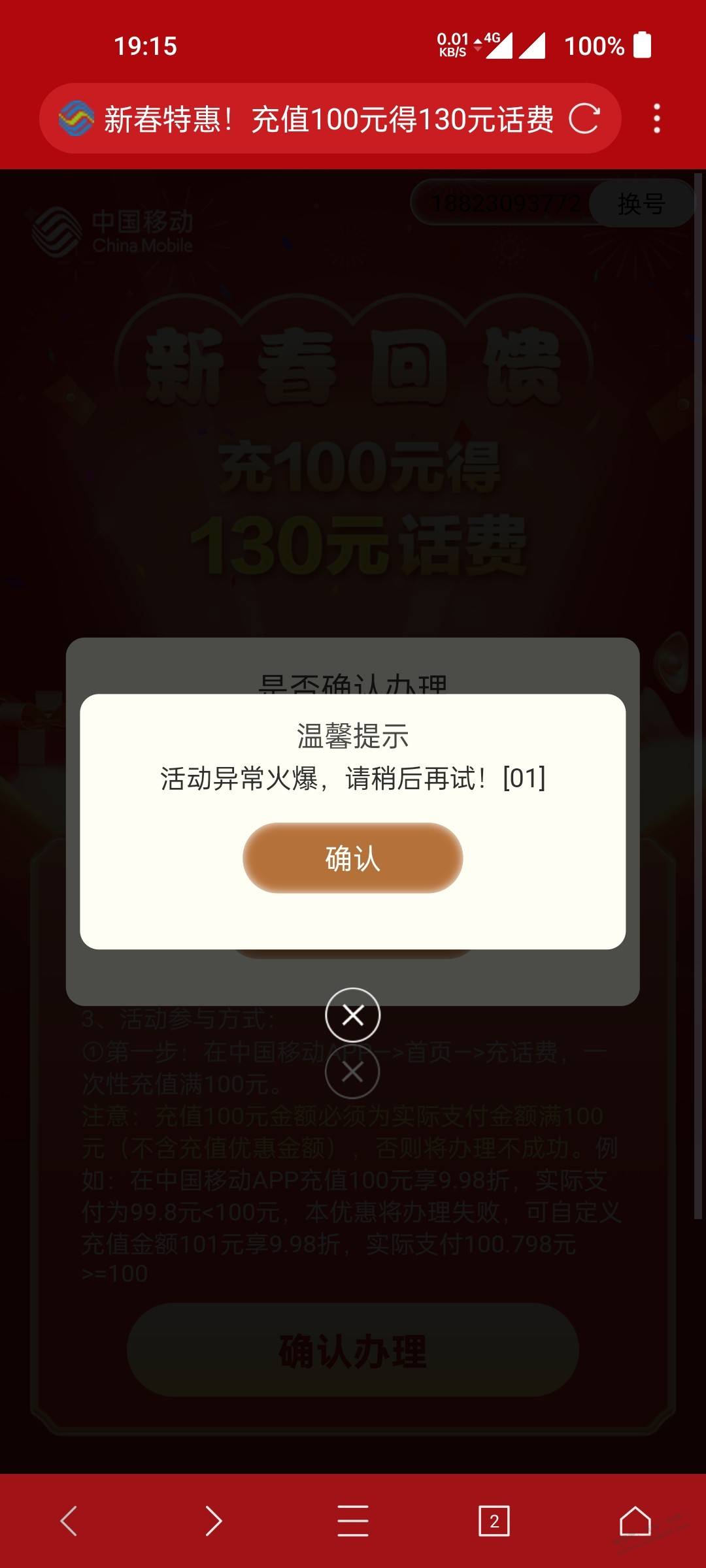 被广东移动耍了,骗充100块话费,然后领取赠费火爆