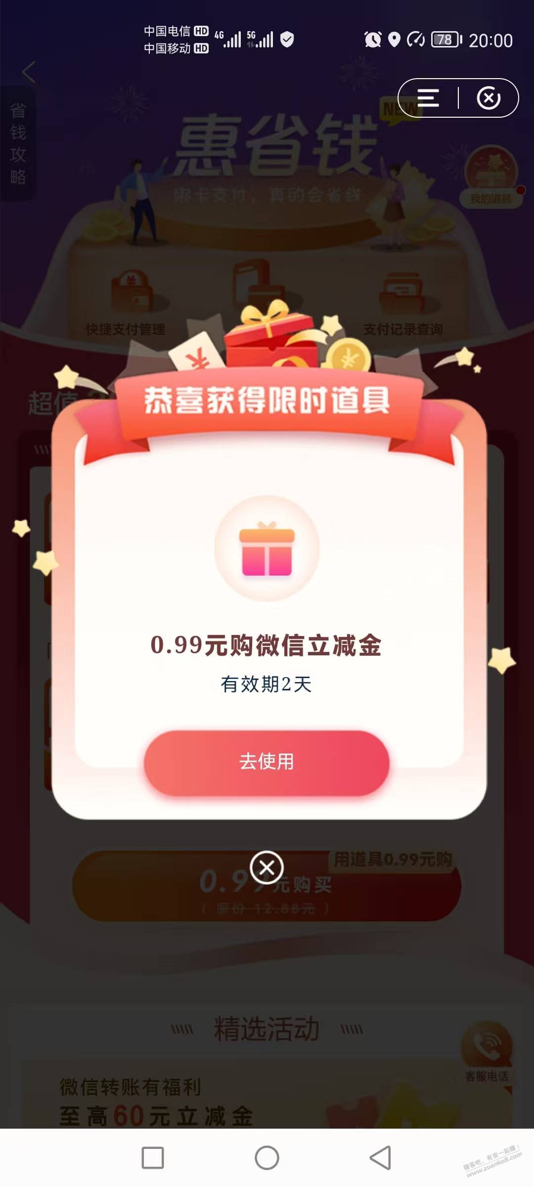 建行惠省钱掉0.99道具,大家去试试