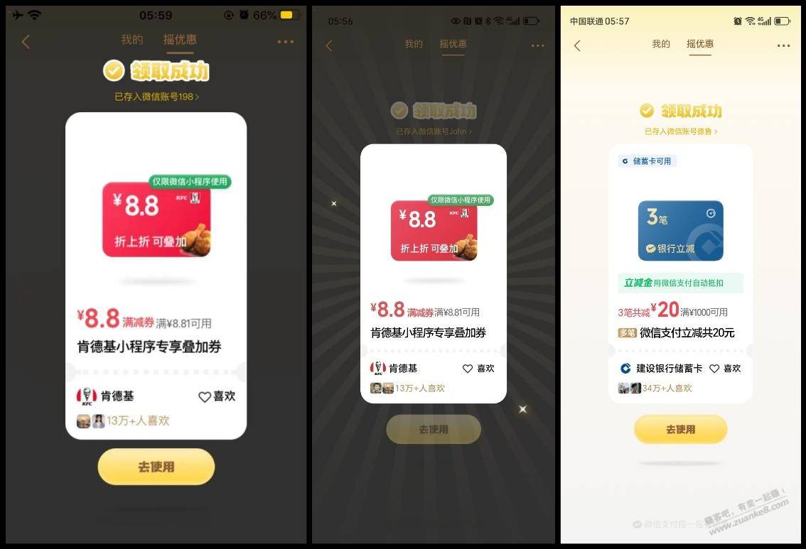 #摇优惠右下角摇一摇每天能去认有用的就行部分有美团16等部分是银行立减