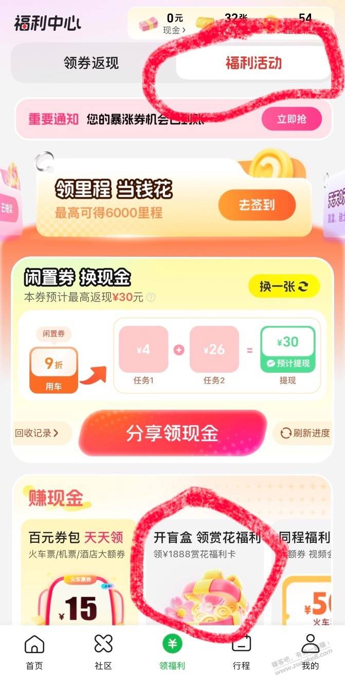 同程app,中间领福利