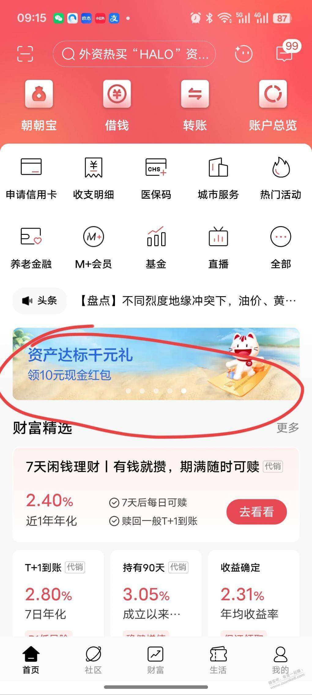 招行月月锦鲤第一期开奖了我低保,零钱通入10元可拿{:嘿哈:}