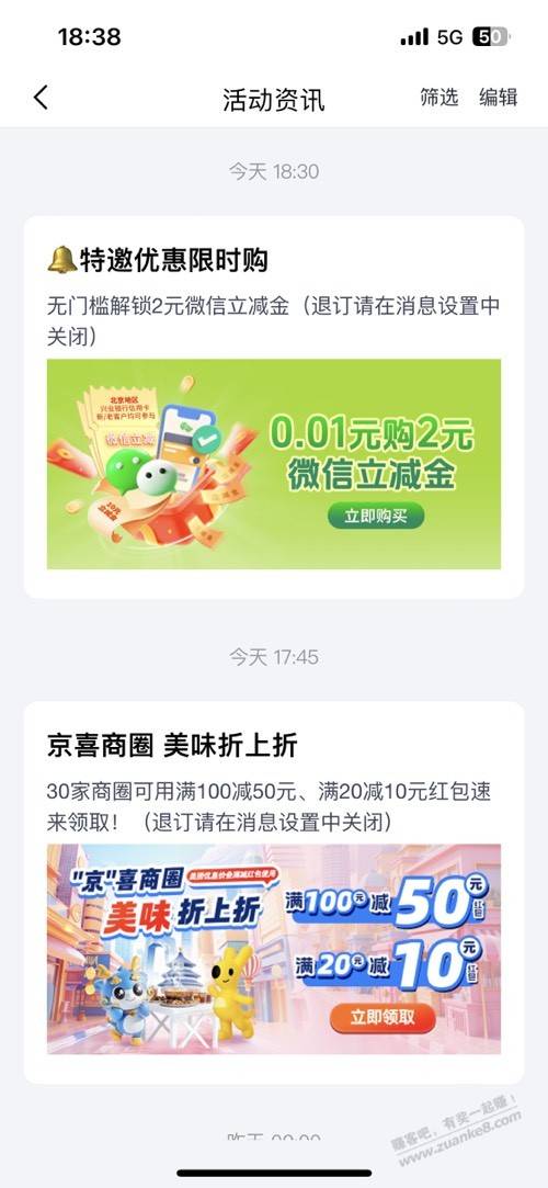 工行-任务中心-兴农同享礼右上角假分享,部分人有第三期,现在有反馈5立减