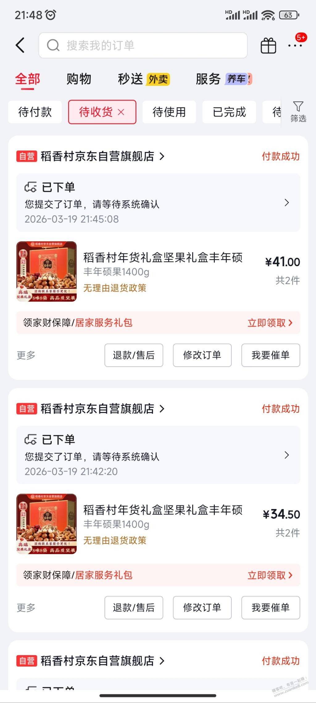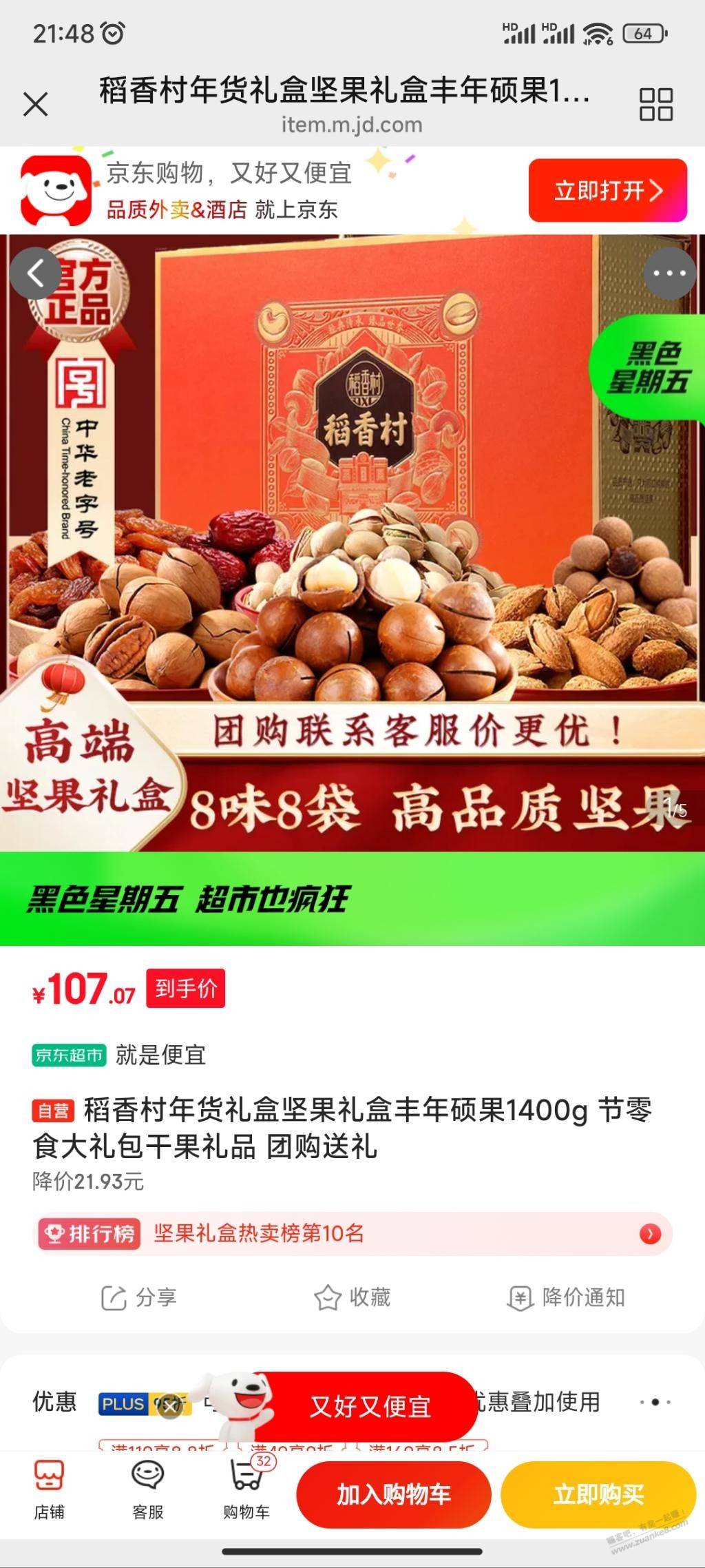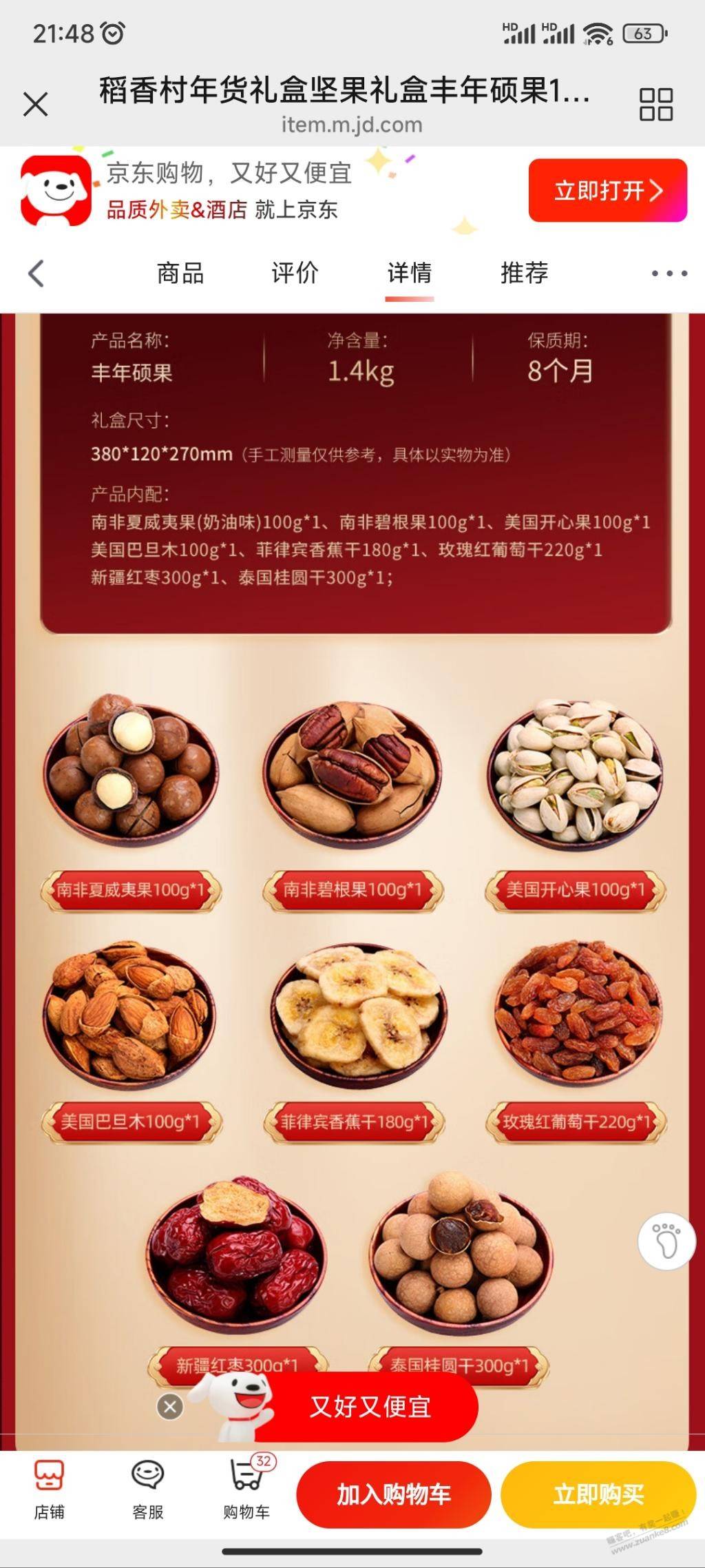 京东好价坚果礼盒1400g两箱44.5