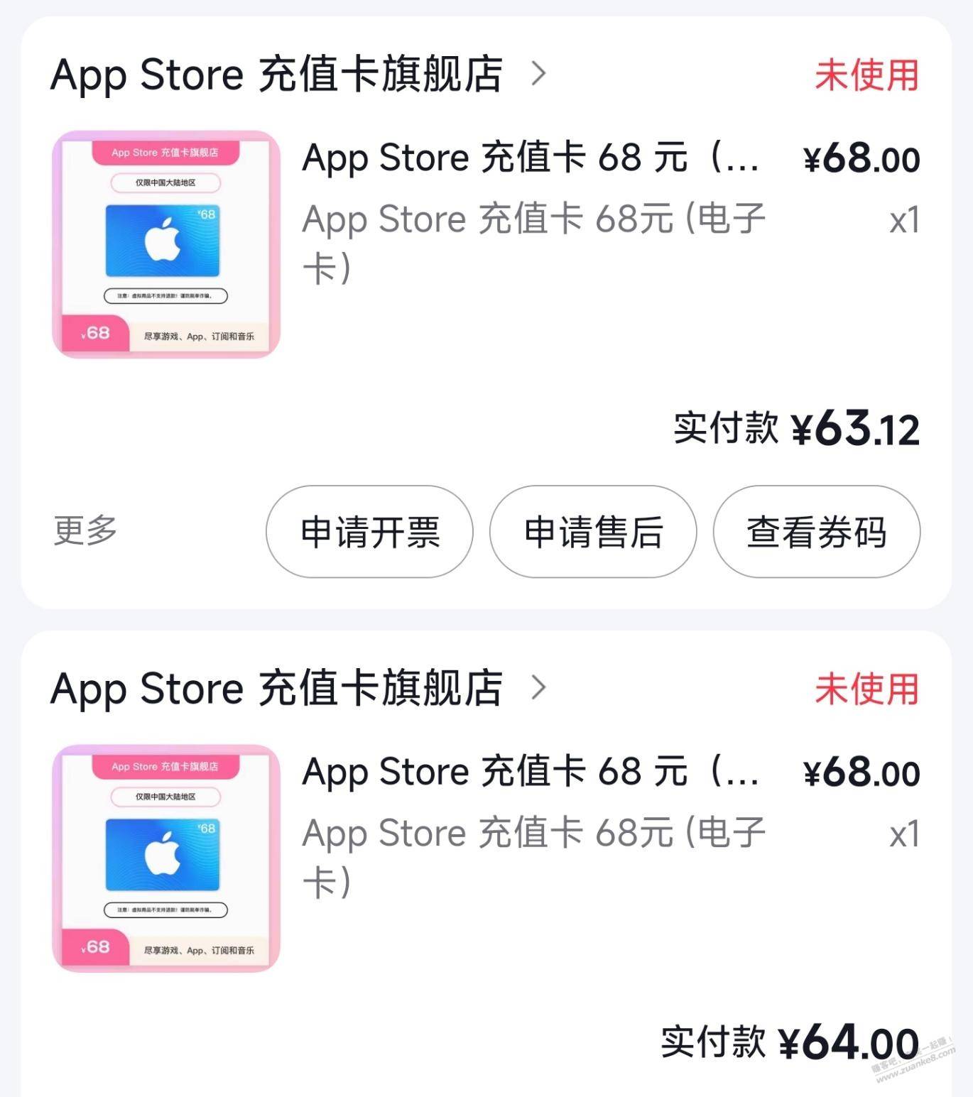 抖音APP买68元苹果电子卡,5润