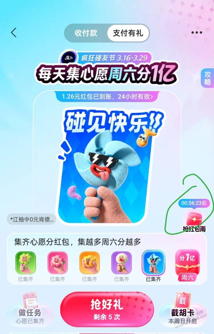 支付宝搜索支付有礼进去集卡,集齐必得2元