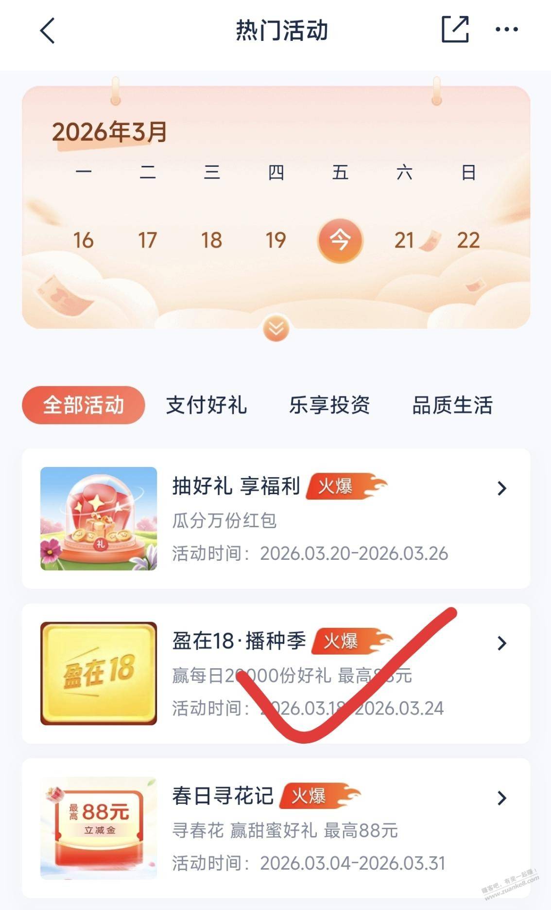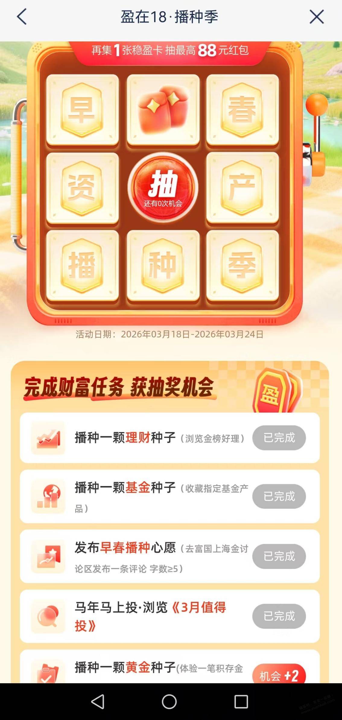 浦发app,热门活动,盈在18播种季,抽体验金