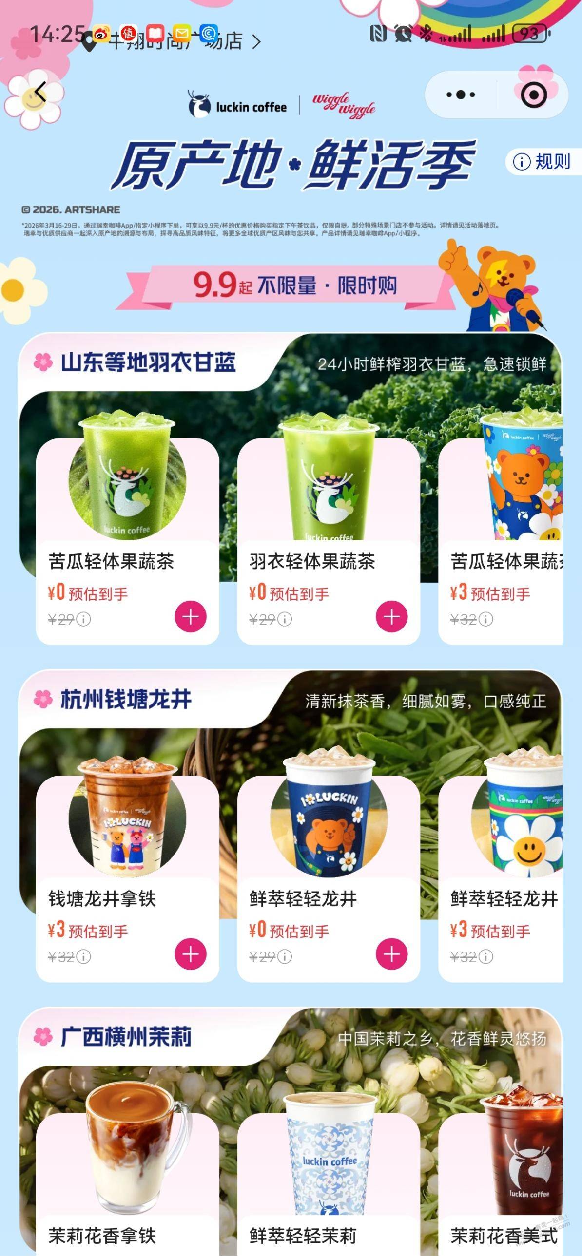 瑞幸登陆领原产地鲜活季无门槛9.9元券