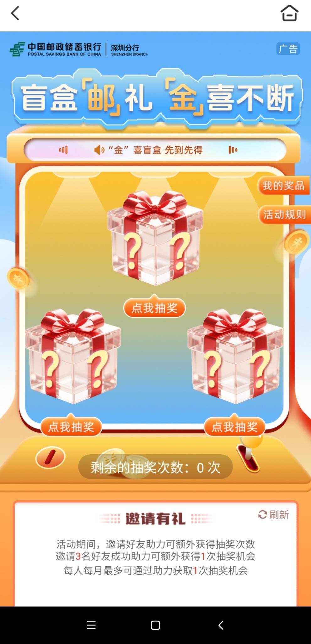 ??邮储app盲盒邮礼月4次