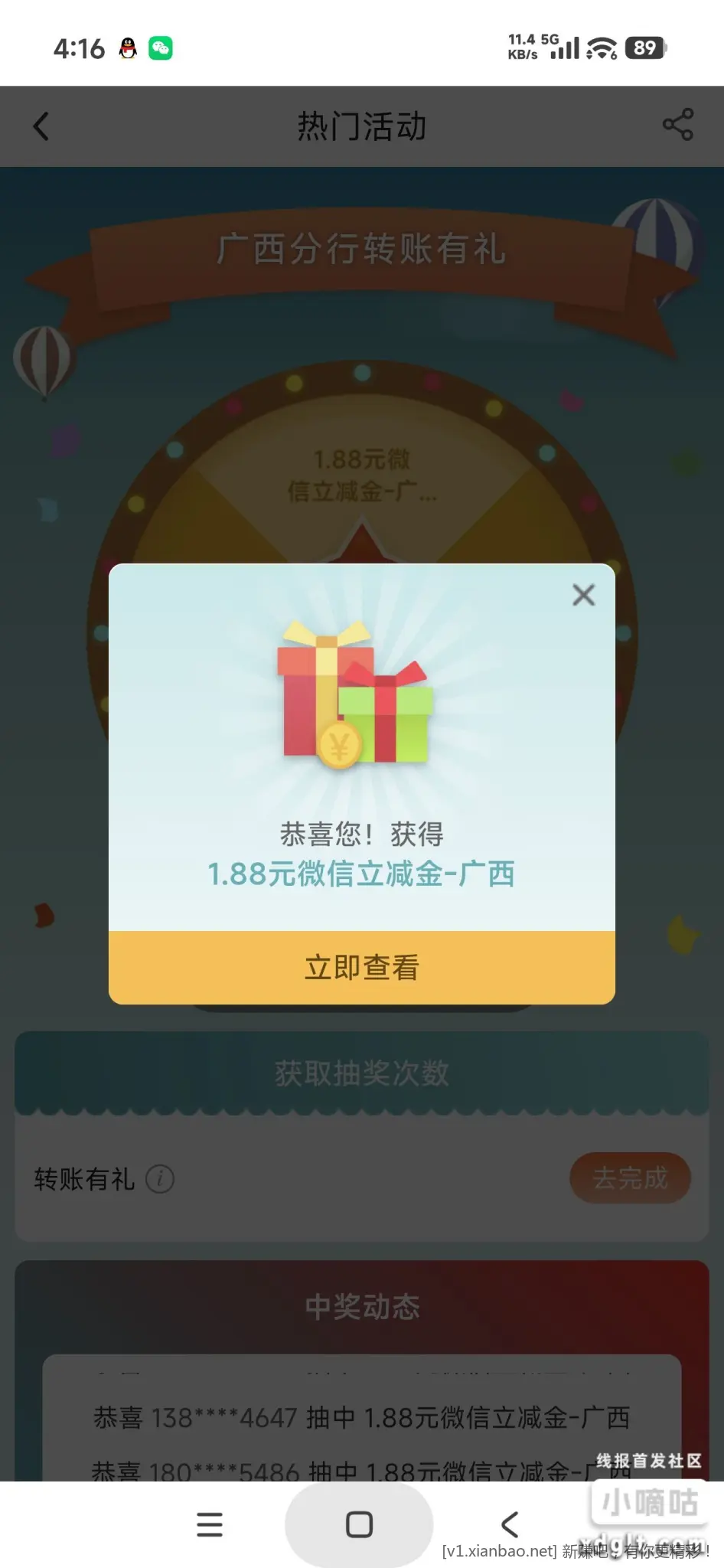 工行-任务中心-兴农同享礼右上角假分享,部分人有第三期,现在有反馈5立减