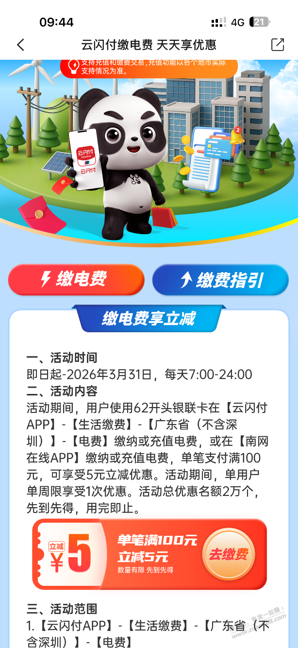 广东云闪付电费100-5