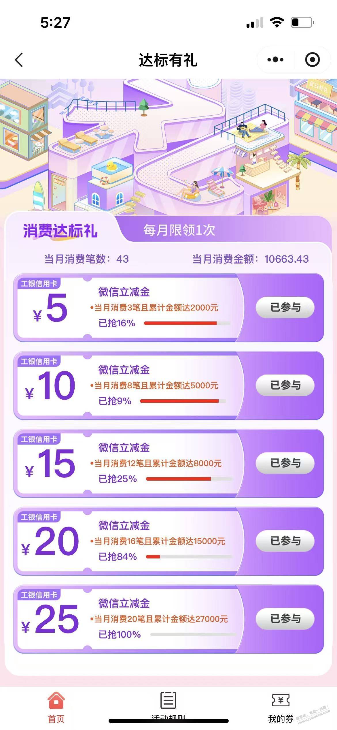 - 工行-任务中心-兴农同享礼右上角假分享,部分人有第三期,现在有5立减