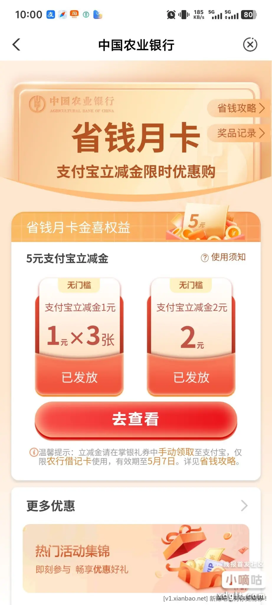 农业银行立减金有了入口:农业银行→首页→活动锦集{:加油:}