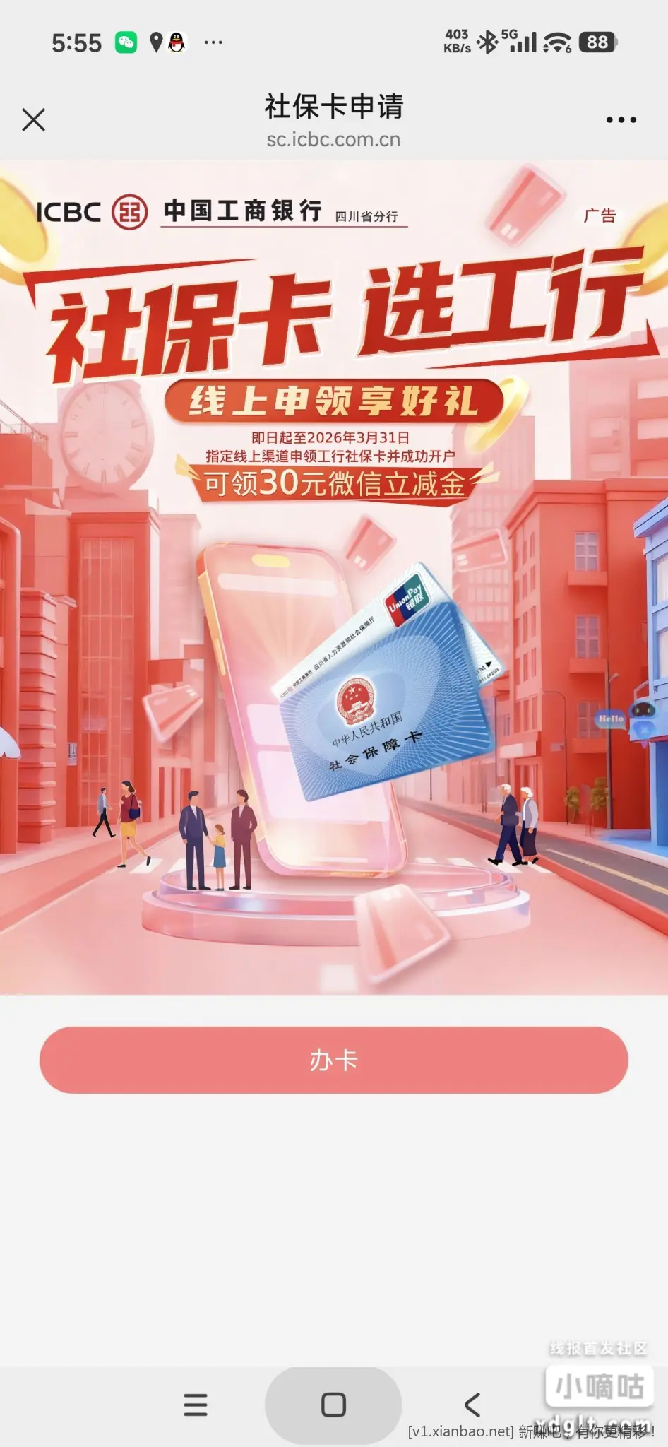 没有工行社保卡的可以申请四川绵阳工行社保卡,有三十立减金