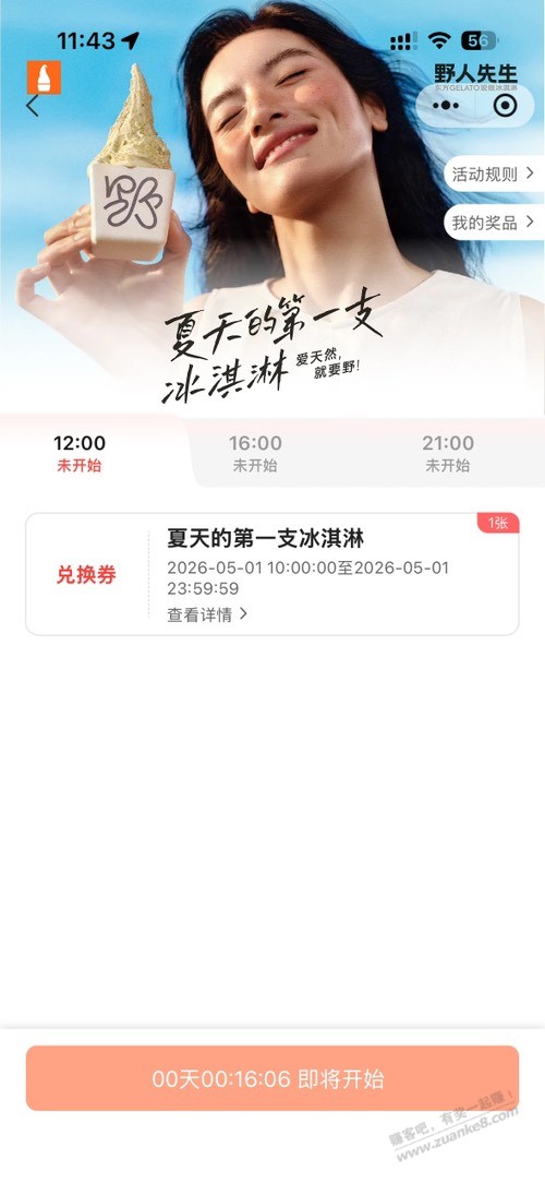 4月20日,野人先生30万支冰淇淋免费领