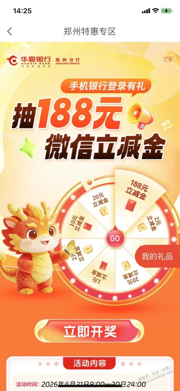 活动路径:华夏银行APP-底部生活-左上改郑州
