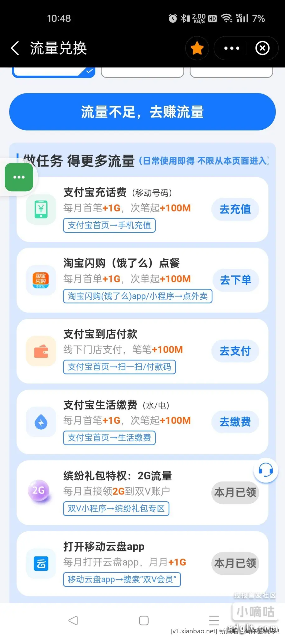 zfb双v会员,缴水电费一个g流量可以缴1分钱{:旺柴:}