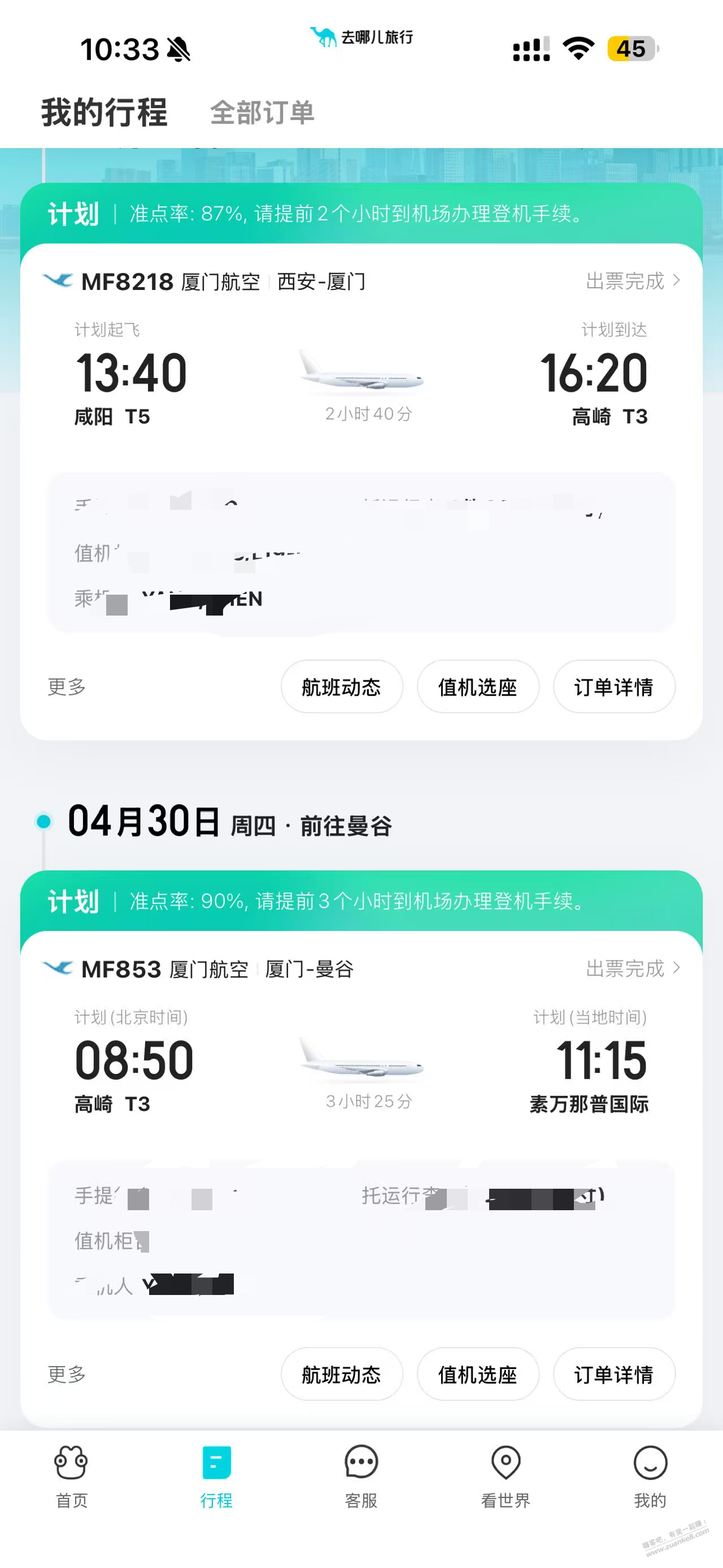 4.30 早上 厦门→曼谷