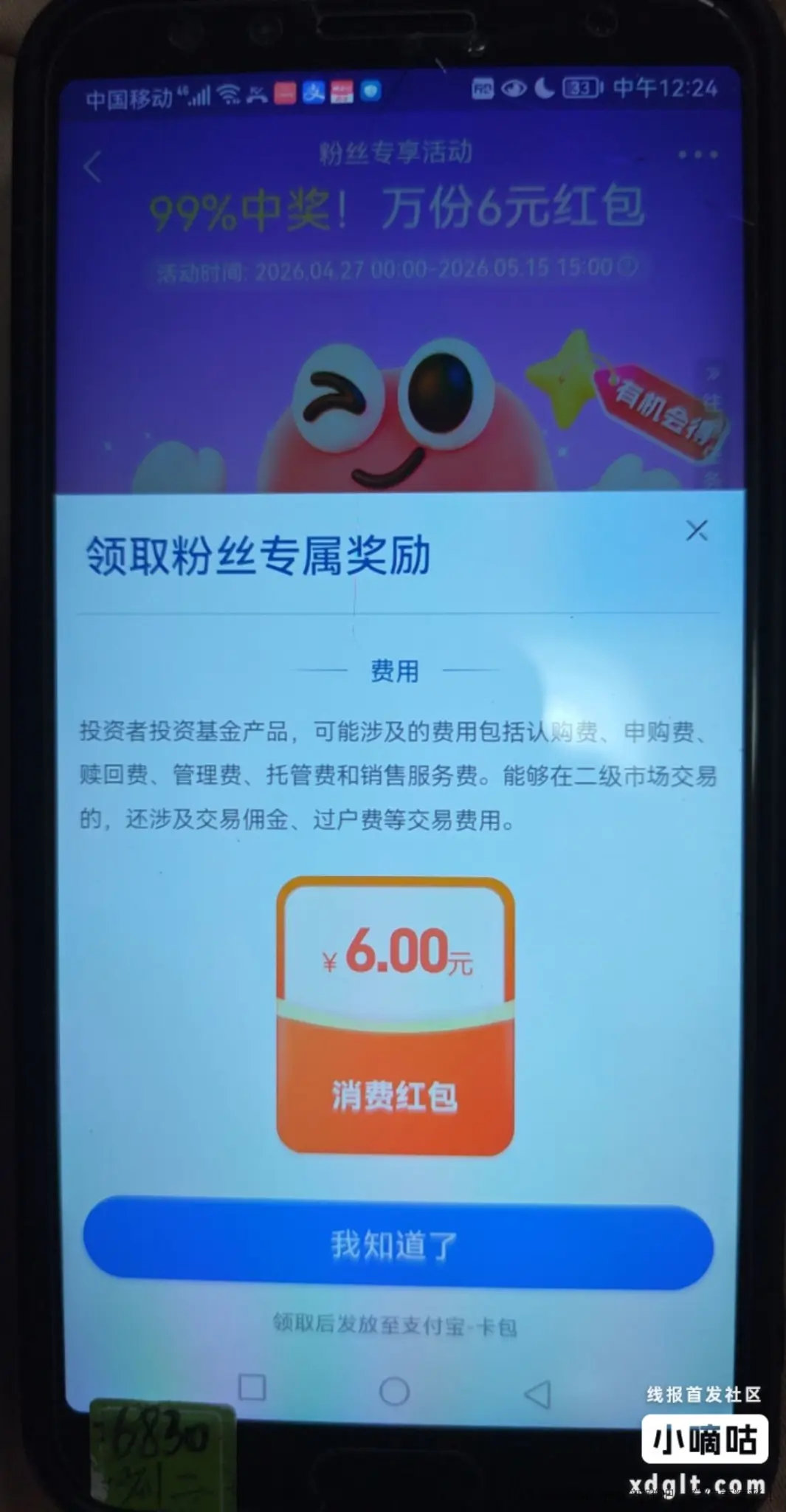 昨天跟我买了中欧基金10元的,现在速度去领6元支付通用红包,美滋滋,破百了。
