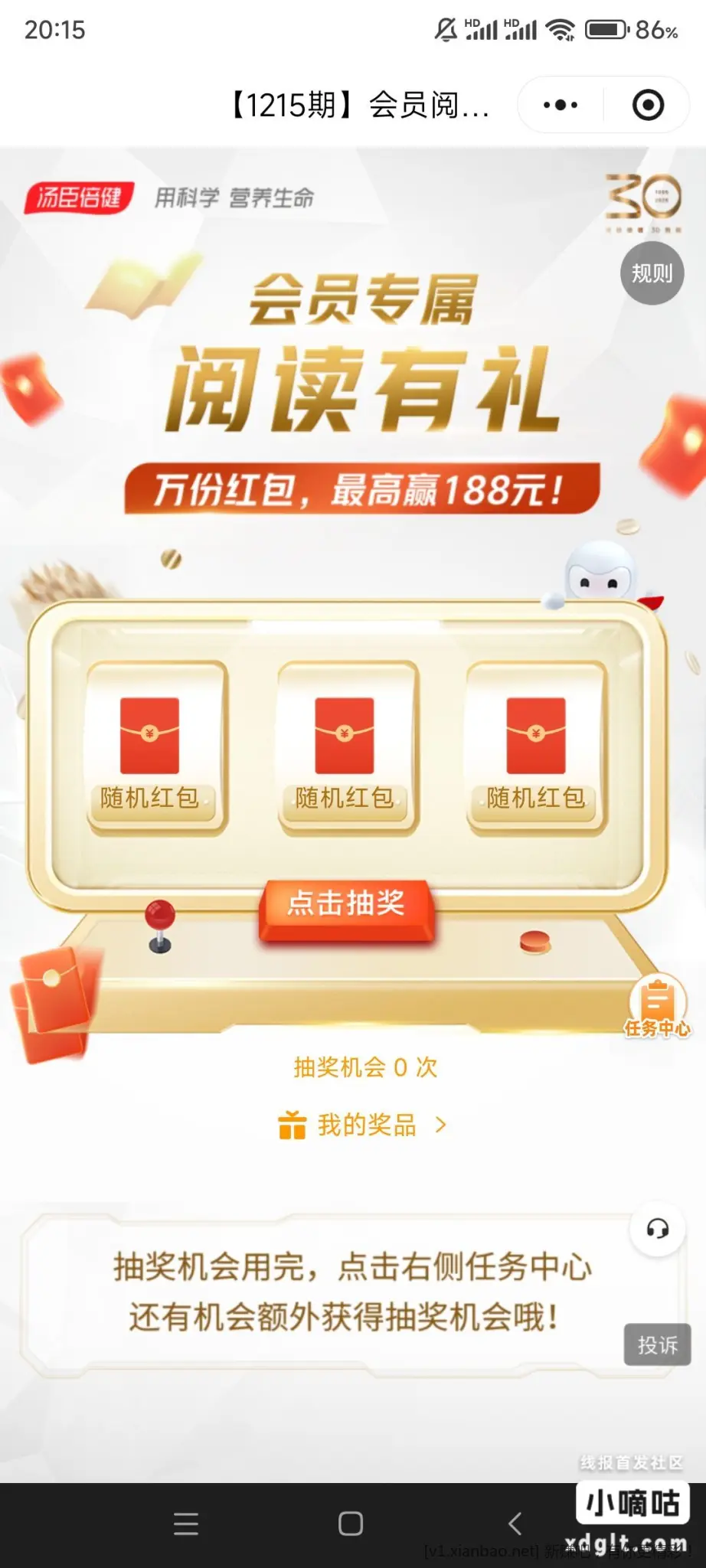 - 汤成倍健这个活动有水,中2个包,链接