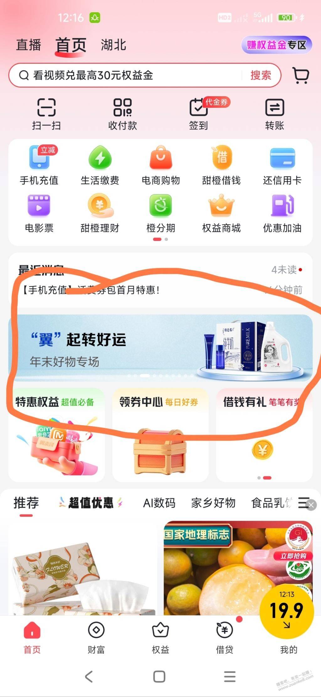 我在湖北,不用定位上海,用的上海移动号码登录翼支付,登录好关掉,再重新打开,就能看到首页中间滚动条 :翼起转起来,