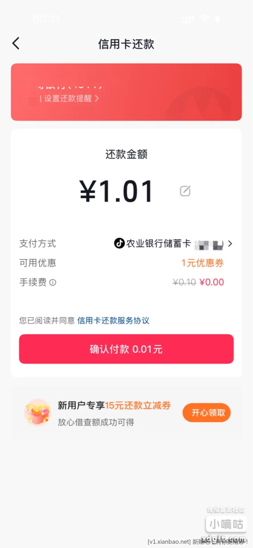 - bug农行省錢月咔的立减?直接抖音还