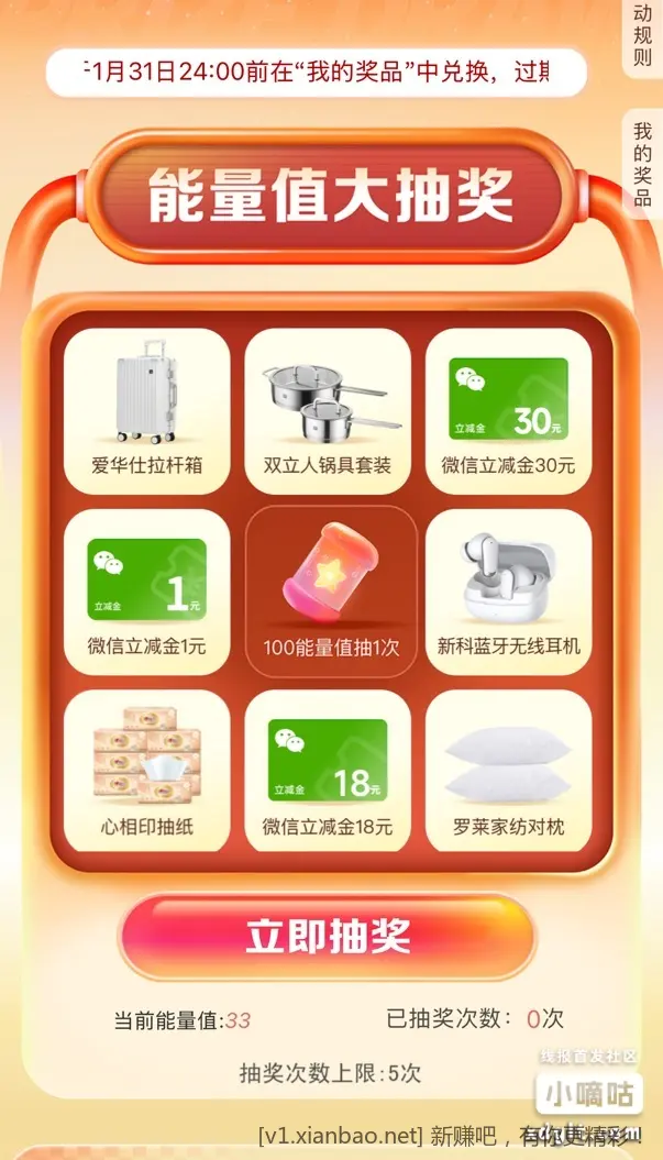 中信能量值抽奖活动开始了,最低一元立减金最高30元立减金,去试试