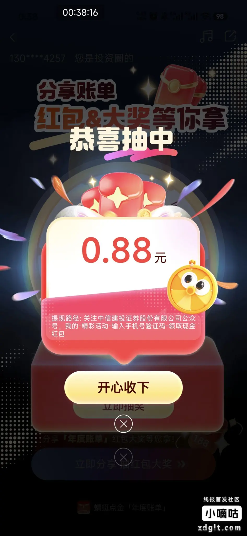 蜻蜓点金app(中信建投证券),横幅年度账单分享两次抽2次{:捂脸:}我运气差,运气好的18.8