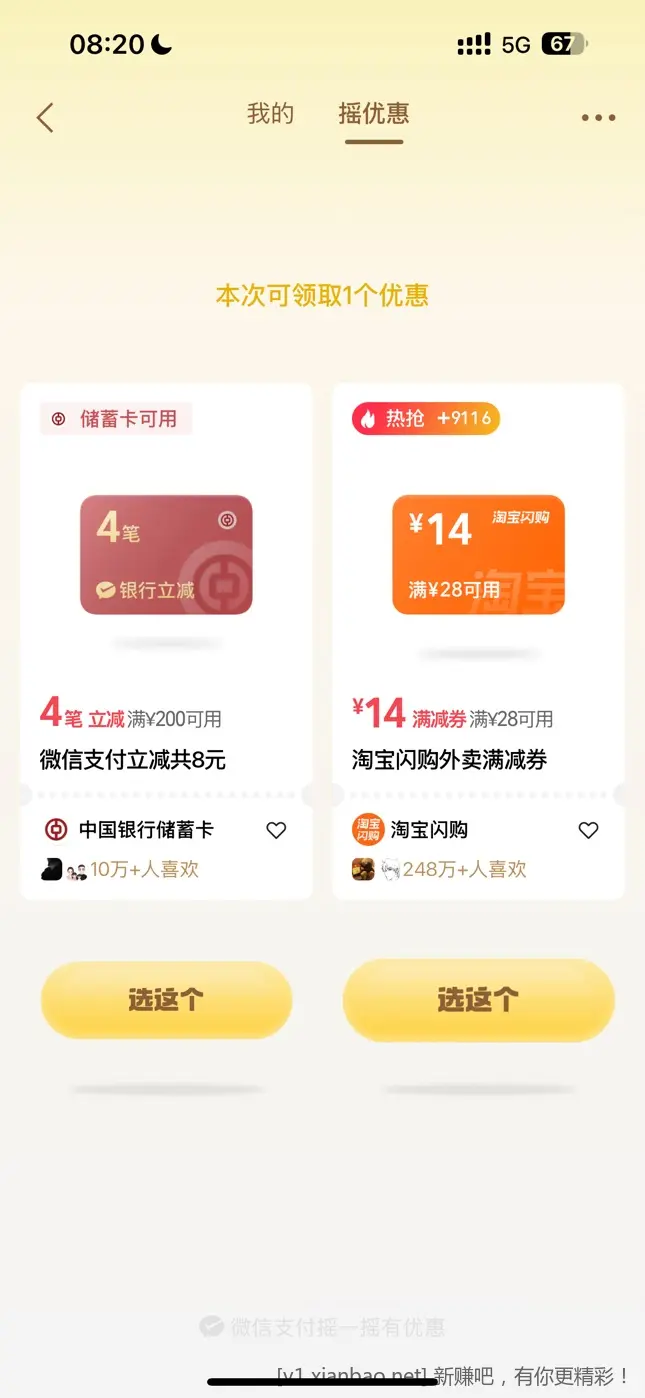 微信摇一摇刚中8立减
